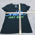 Nike Womens Graphic T Shirt Slim Fit Short Sleeves V Neck Black Size Medium