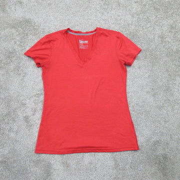 Nike Womens Pullover T-Shirt Top Regular Fit Short Sleeves V-Neck Red Size Small