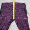 Nike Womens Striped Capri Legging Gym Elastic Waist Dri Fit Purple Size Medium