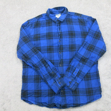 Old Navy Mens Check Button Up Shirt Slim Fit Long Sleeve Blue Size X Large