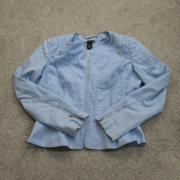 Perfect Foam Women Full Zip Bomber Jacket Long Sleeves Crew Neck Aqua Blue Size