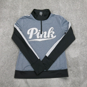 Pink Victoria Secret Womens Activewear Zip Up Sweatshirt Long Sleeve Gray Size S