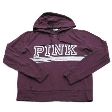 Pink Victorias Secret Womens Hoodie 1/4 Zip Kangaroo Pockets Maroon Size S/P