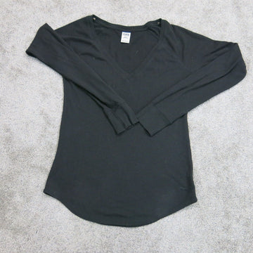 Pink Victorias Secret Womens Pullover Sweatshirt V Neck Long Sleeves Black Sz S