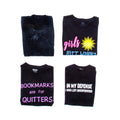 This assortment of tees is the same as our Preloved Printed T-Shirts you know and love— Just all black!