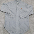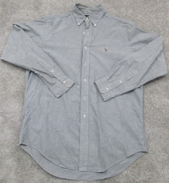 Ralph Lauren Button Down Shirt Mens Size 16 Gray Long Sleeves Sports Logo Shirt