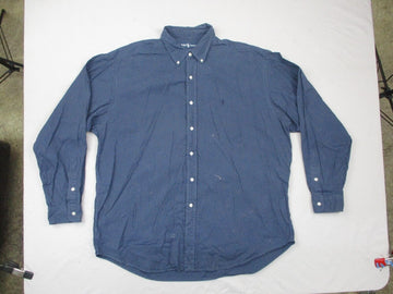 Ralph Lauren Men Button Down Shirt 100% Cotton Long Sleeve Logo Blue Black SZ XL