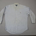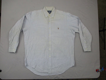 Ralph Lauren Men Button Down Shirt Long Sleeve Striped Logo Blue White SZ 16-33
