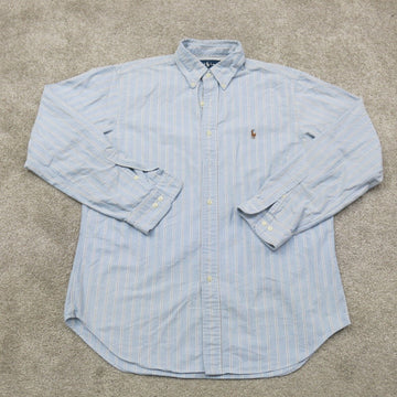 Ralph Lauren Mens Button Down Shirt Classic Fit Striped Long Sleeves Blue SZ 16