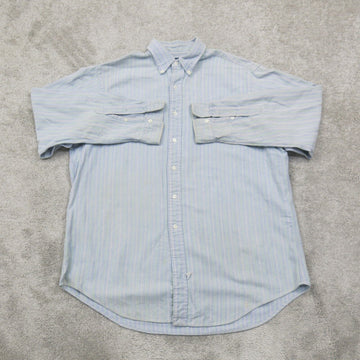 Ralph Lauren Mens Button Down Shirt Striped Cotton Long Sleeves Blue Green 17-35