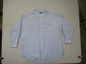 Ralph Lauren Mens Check Button Down Shirts Long Sleeves Logo Light Blue Size 17