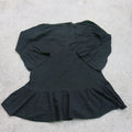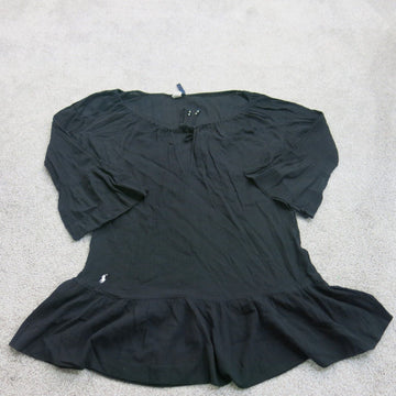 Ralph Lauren Women Knit Blouse Top Peplum Hem Round Neck 100% Cotton Black Small