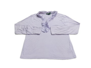 Ralph Lauren Womens Blouse Top Ruffle Neck 100% Cotton Light Purple Size Medium