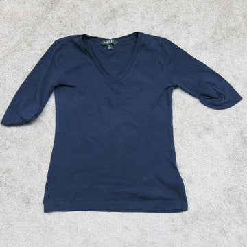 Ralph Lauren Womens Pullover T Shirt Top Short Sleeve V Neck Blue Size Small