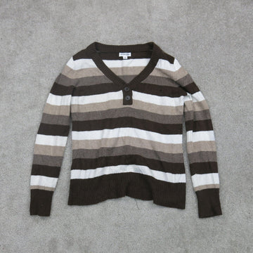 ST Johns Bay Womens Pullover Henley Sweater Striped Brown White Size Large