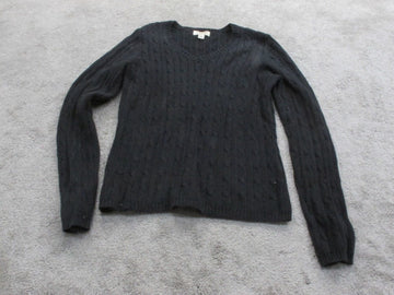 ST. Johns Bay Womens Pullover Knitted Sweater Long Sleeves V Neck Black Size S