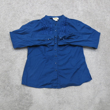 Talbots Women Button Up Blouse Shirt Top Long Sleeve 100% Cotton Blue Size Small