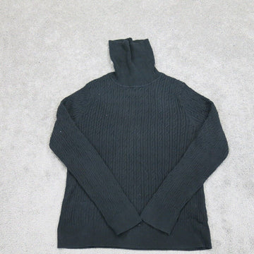 Talbots Women Knitted Sweater Long Sleeve Turtleneck Pima Cotton Black SZ Medium