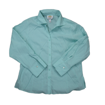 Talbots Womens Button Down Shirt 100% Cotton Long Sleeve Aqua Blue Size 12P