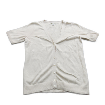 Talbots Womens Cardigan Sweater Short Sleeves Front Button Ivory Size X Small