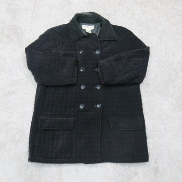 Talbots Womens Double Breasted Coat Long Sleeves Pockets Button Black Size Large