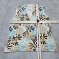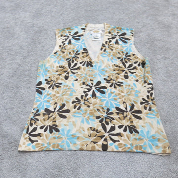 Talbots Womens Floral Blouse Top Sleeveless V Neck Beige Blue Size Small