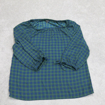 Talbots Womens Gingham Casual Flannel Blouse Top Half Sleeves Green Blue Size L