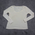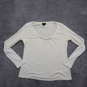 Talbots Womens Long Sleeve Shirt Top 100% Pima Cotton Scoop Neck Ivory Size S
