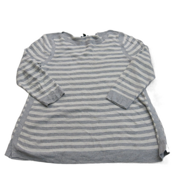 Talbots Womens Pullover Sweater Striped Long Sleeves Crew Neck Gray Ivory Sz Mp