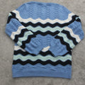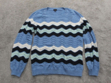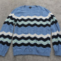 Talbots Womens Pullover Sweater Knitted Long Sleeves Chevron Blue White Size M