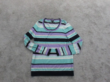 Talbots Womens Pullover Sweater Knitted Striped Long Sleeves Blue White Size MP