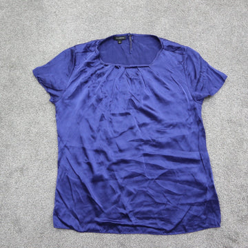 Talbots Womens Silk Midnight Sapphire Blouse Top Back Keyhole Cap Sleeve Blue 6