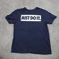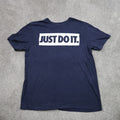 The Nike Tee Men Tee Just Do It Graphic T-Shirt Short Sleeve Logo Navy Blue SZ M