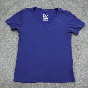 The Nike Tee Women Athletic Cut T Shirt Short Sleeve V Neck Dri-Fit Blue Size M