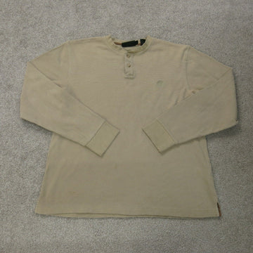 Timberland Shirt Mens Small Cream Thermal Henley Neck Long Sleeve Lightweight