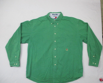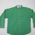 Tommy Hilfiger Mens Button Down Shirt Long Sleeves Logo 100% Cotton Green SZ XL