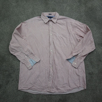 Tommy Hilfiger Mens Striped Button Down Shirt Regular Fit Short Sleeve Red SZ XL