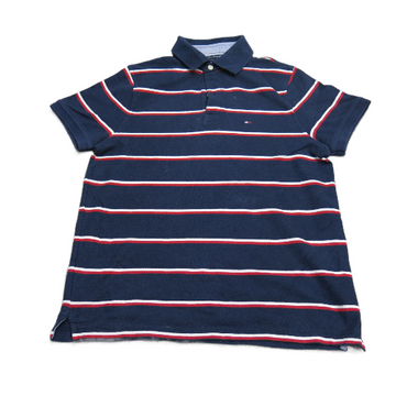 Tommy Hilfiger Mens Striped Polo Shirt Sleeves Navy Blue White Red Size XS