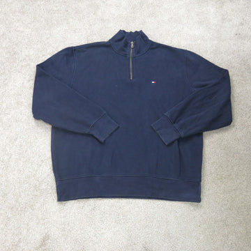Tommy Hilfiger Sweater Mens X Large Blue Pullover Long Sleeve Logo 14 Zip