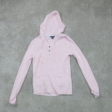 Tommy Hilfiger Womens Pullover Hooded Sweater Drawstring Pockets Light Pink SZ L