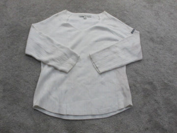 Tommy Hilfiger Womens Pullover Sweater V Neck Long Sleeve Logo White Size Large