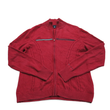 Tommy Hilfiger Womens Sweater Knitted Full Zip Long Sleeve Mock Neck Red SZ L/G