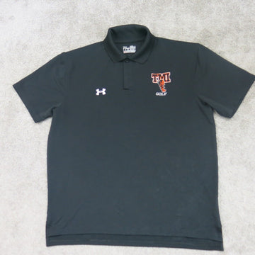 Under Armour Mens Loose Fit Heat Gear Polo Shirt Collared TMI logo Black SZ S.