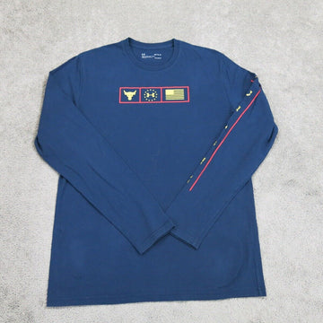 Under Armour Mens T Shirt Long Sleeves Loose Heatgear Blue Logo Size Medium