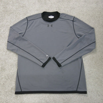 Under Armour Shirt Mens Gray XL Long Sleeve Tee Top Crew Neck Swoosh Logo Sports