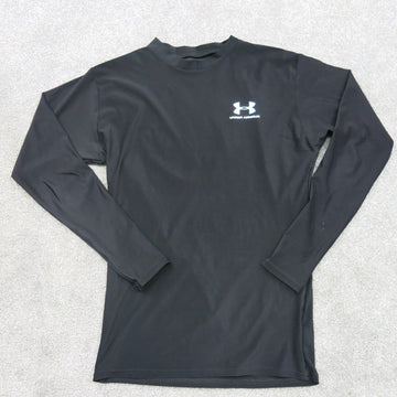 Under Armour Shirt Top Mens Size Large Black Solid Fitted Logo Long Sleeve Shirt