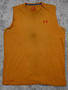 Under Armour Sports Basketball Shirt Men's Medium Brown Sleeveless Logo Shirt