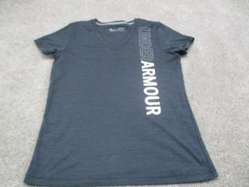 Under Armour T Shirt Mens Size S/M Blue Logo Short Sleeve Heatgear Loose Top