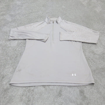 Under Armour Women 1/4 Sweatshirt Top Semi Fitted Long Sleeves Light Gray SZ XL