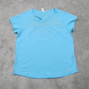 Under Armour Womens T Shirt Top Fitted Heatgear Shorts Sleeve Aqua Blue Size LG